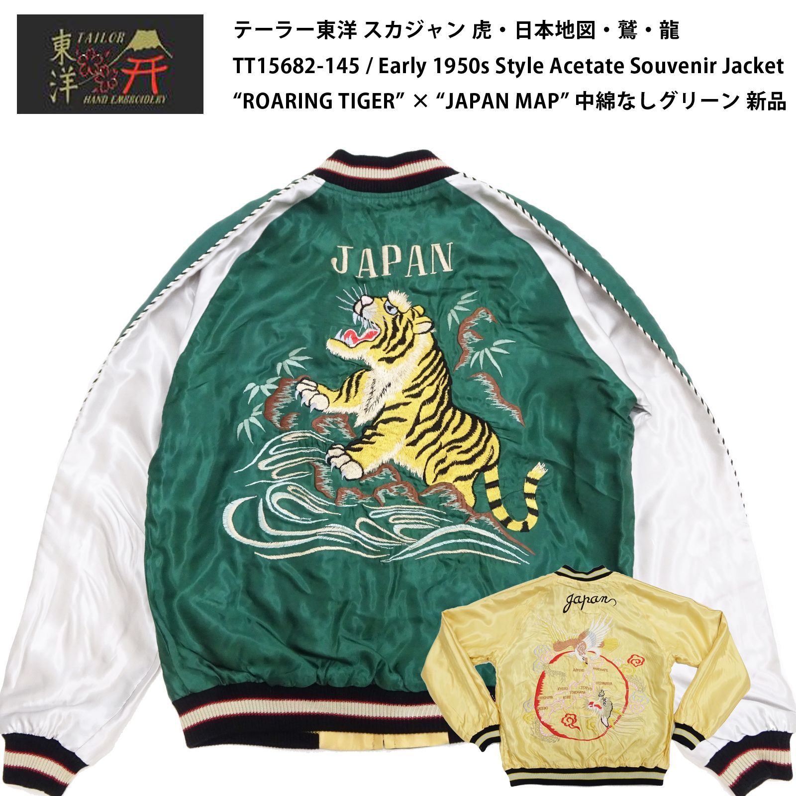 | 商品の特徴 | テーラー東洋エンタープライズ スカジャン 虎 龍 日本地図 テーラー。テーラー東洋エンタープライズ スカジャン 虎 龍 日本地図 テーラー。tailor-toyo-3-2.jpg。こちらのサイトで購入しましたが、ほとんど着る事が無かった為出品します。美品の部類だと思いますし、刺繍のほつれも目立つものはありませんがM品番の古い物ですのでご理解下さい。虎面の袖リブに1か所小さな穴があります(写真8枚目) 東洋エンタープライズ テーラー東洋M18425サイズ表記サイズ M身幅:約55cm着丈:約56cm平置きで採寸しています。多少の誤差はご了承下さい。。テーラー東洋エンタープライズ スカジャン 虎 龍 日本地図 テーラー。50s OKINAWA SOUVENIR JACKET vintage。ベロアスカジャン黒ブラック古着袖刺繍和柄鷹鷲鳥竜龍ドラゴン別珍スーベニアメンズ。エヴァンゲリオンスカジャン Lサイズ | ||