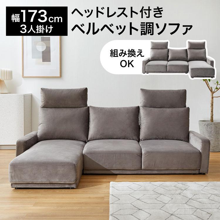 | メーカー | 【moncheese】LOWYA ベルベット調3人掛けカウチソファ グレー |